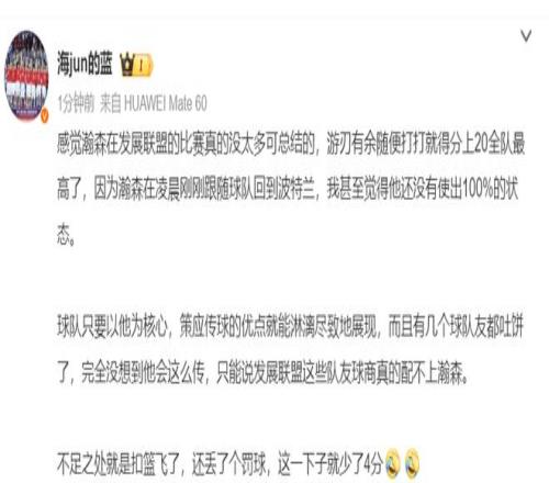 媒體人:感覺楊瀚森在G聯(lián)賽沒有太多可總結(jié),比賽游刃有余得分上20全隊最高,而且他還剛剛跟隨開拓者從金州回到波特蘭,我甚至覺得他都還沒有100%發(fā)力。只要球隊以他為核心就可以展示策應(yīng)的優(yōu)點,而且?guī)讉€隊友球商跟不上還連續(xù)吐餅。