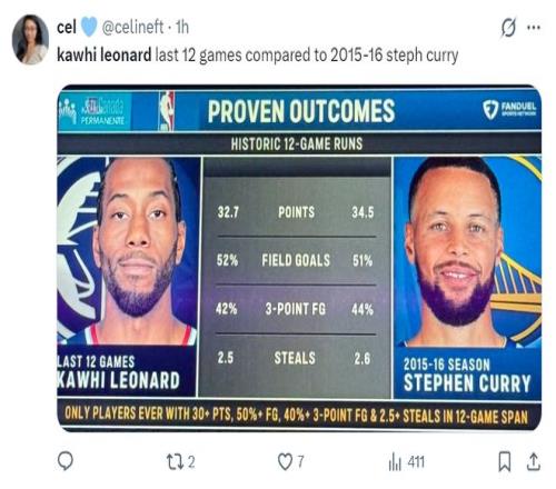 此役后萊昂納德場均數(shù)據(jù)提升到33.9分鐘,拿到28.1分6.4籃板3.4助攻2.2搶斷0.7蓋帽,命中率50.1%,三分命中率38.8%。已經(jīng)有快船媒體認(rèn)為小卡本賽季也有希望去競爭最快進步球員了,34歲重新進入巔峰?