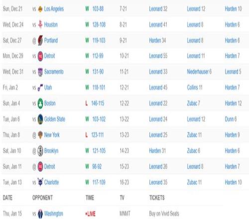 快船過去13場比賽取得11勝2負(fù),小卡的正負(fù)值也繼續(xù)提升到+145還是聯(lián)盟第一,萊昂納德的場均得分也提升到場均32.72分也是聯(lián)盟第一,他的個人能力真的強。