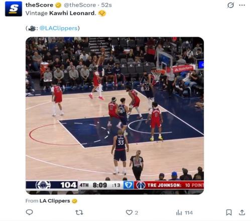 北京時間1月15日,快船以119-105擊敗奇才拿到四連勝。這場比賽科懷-萊昂納德在手感沒有那么出色的情況下依舊砍下30+(連續(xù)兩場30+),因為他的外線比中投還準(zhǔn),本賽季小卡增加外線的出手后效果非常之好,此役命中7個三分球追平生涯最高。