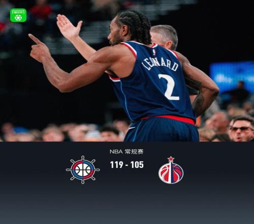 第四節(jié)快船倫納德拿下14分,奇才凱肖恩-喬治拿下4分,最終快船119-105戰(zhàn)勝奇才