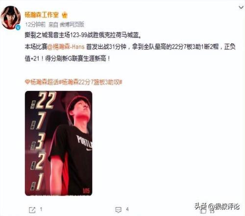 中國球員楊瀚森表現(xiàn)出色,交出22分7籃板3助攻1搶斷2封蓋,其中,得分創(chuàng)造征戰(zhàn)G聯(lián)賽的新高,而球隊幾乎完全圍繞他為核心,引發(fā)外界的熱議。