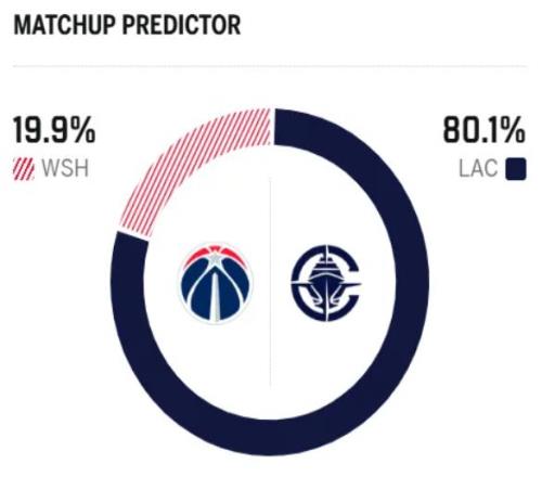 賽前,美媒ESPN對本場比賽進行了勝率預測,快船隊勝率為80.1%,奇才勝率則僅有可憐的19.9% ,差距太明顯了。