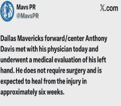 還是據(jù)Shams報道,濃眉今天前往洛杉磯,跟手部??漆t(yī)生進行會面,重新確定了治療方案,不做手術(shù)了。