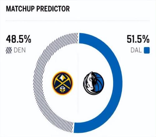 賽前,美媒ESPN對本場比賽進行了勝率預(yù)測,獨行俠隊勝率高達51.5% ,掘金勝率則僅有48.5% ,西部倒數(shù)竟然意外略占優(yōu)勢。