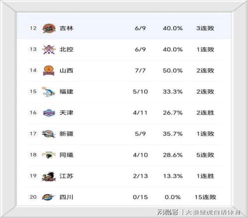 ④、15連敗的四川男籃賽季至今仍難嘗一勝排名墊底。