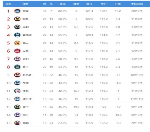 今日比賽后掘金、馬刺排名互換,其他西部球隊(duì)排名不變。
