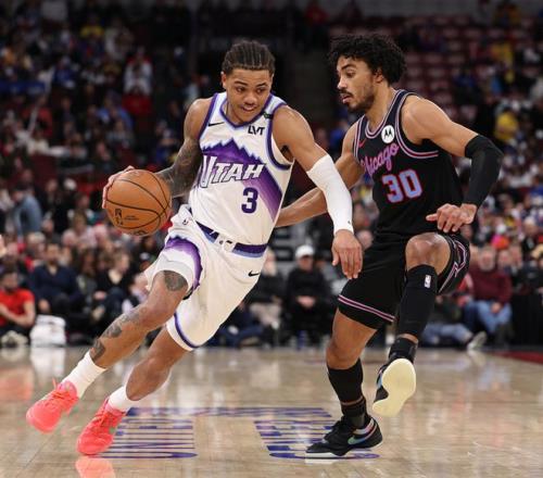爵士客場挑戰(zhàn)公牛,爵士少了馬爾卡寧、凱斯勒、努基,公牛少了吉迪、科林斯,經(jīng)過四節(jié)大戰(zhàn)公牛以2分優(yōu)勢險(xiǎn)勝爵士。武切維奇22中14得到35分7板5助2帽,爵士方面森薩博22中15(三分10中5)得到43分5板2助2斷,喬治17中8得到25分3板7助。