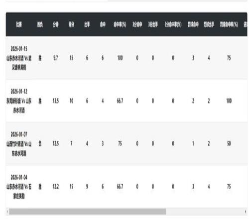 北京時間1月15日,WCBA常規(guī)賽,山東女籃85-76擊敗武漢盛帆女籃,這場比賽中國女籃超級新星張子宇登場9分42秒,6中6,拿到15分5籃板,命中率100%,這場比賽張子宇打出了他登陸WCBA最高效的一場比賽。