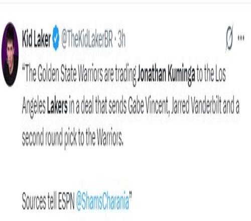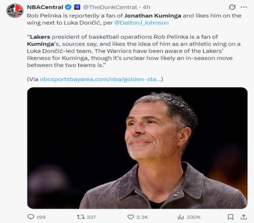 曝去年湖人已關(guān)注庫(kù)明加:佩林卡喜愛(ài)成推手3換1報(bào)價(jià)勇士未接受