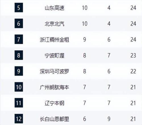 黑馬青島隊以80-67輕松擊敗吉林隊,收獲3連勝,戰(zhàn)績來到11勝4負,成功重返積分榜前4,展現(xiàn)復蘇勢頭。山東隊則是主場以大比分戰(zhàn)勝另一匹黑馬寧波隊,戰(zhàn)績變成10勝5負,升至積分榜第5位;北京隊10勝4負緊隨其后,排名第六。浙江隊9勝6負排第七,寧波隊8勝7負跌至第八,深圳隊8勝6負位列第九。