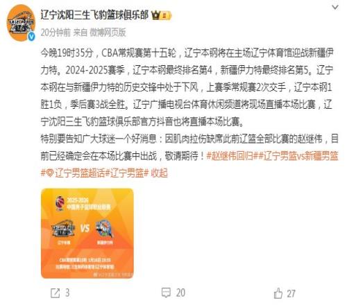 本賽季首次遼疆大戰(zhàn),趙繼偉復出的表現(xiàn)令人期待,他能否率隊取勝值得關注。