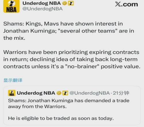 同樣來(lái)自Shams的消息源,去年休賽期簽約的兩年4680萬(wàn)美元續(xù)約合同(第二年球隊(duì)選項(xiàng)),庫(kù)明加認(rèn)為自己是被迫簽署的,此舉進(jìn)一步惡化了他與勇士管理層的關(guān)系。