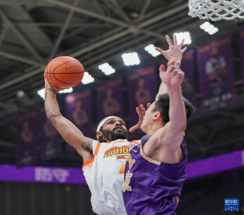 1月15日,江蘇肯帝亞隊球員亨特(左)在比賽中進攻。新華社記者 謝晗 攝