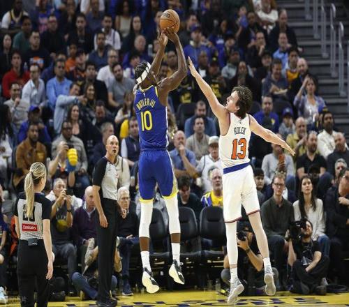 次節(jié)比賽,勇士延續(xù)進(jìn)攻火力,連續(xù)兩節(jié)得分突破30+,進(jìn)攻端保持穩(wěn)定輸出的同時(shí),防守端也發(fā)力施壓,首次將尼克斯單節(jié)得分限制在25分以下。比賽中段,勇士順勢(shì)將比分追至40-40平,隨后雙方陷入膠著,比分交替上升,持續(xù)纏斗至52-52平。關(guān)鍵時(shí)刻勇士果斷沖擊內(nèi)線取分,以58-57反超比分。之后勇士牢牢掌控微弱優(yōu)勢(shì)并逐步擴(kuò)大,此節(jié)單節(jié)凈勝8分,上半場(chǎng)結(jié)束時(shí),勇士以62-59實(shí)現(xiàn)反超。