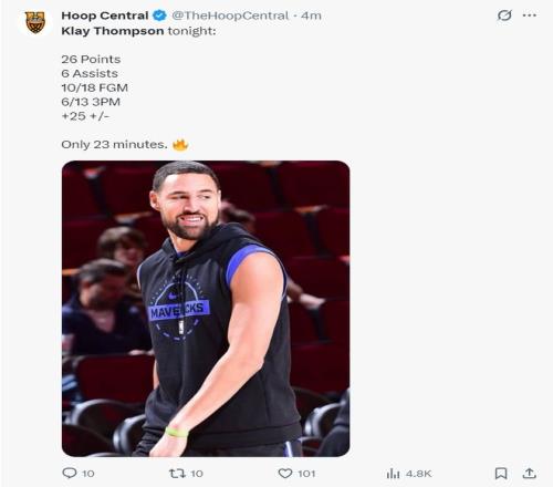 這場比賽克萊僅僅出戰(zhàn)23分鐘,18中10,三分13中6,拿到26分6助攻1籃板1搶斷1蓋帽,命中率55.6%,三分命中率46.7%,真實(shí)命中率72.2%。正負(fù)值+25,這場比賽感覺讓我們看到了那個(gè)單節(jié)37分的他,35歲的老克萊算老夫聊發(fā)少年狂了。