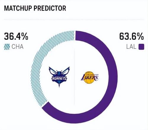 這是兩隊本賽季的第二次交鋒,上一場交手,湖人隊以10分之差大勝黃蜂。賽前,美媒ESPN對本場比賽進行了勝率預測,湖人勝率為63.6% ,優(yōu)勢明顯,黃蜂隊勝率則僅有36.4%。