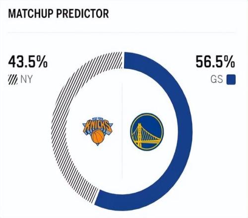 這場比賽不僅是東西部球隊(duì)之間的較量,更是兩隊(duì)鞏固排名的關(guān)鍵戰(zhàn)役。賽前,美媒ESPN對本場比賽進(jìn)行了勝率預(yù)測,尼克斯的勝率意外僅有43.5%,劣勢明顯,勇士隊(duì)的勝率則高達(dá)56.5%。