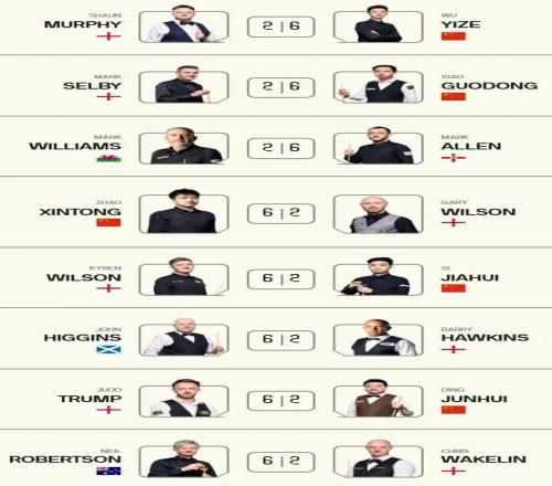 奇怪的默契增加了!斯諾克大師賽首輪比分全是62三名中國選手闖入八強