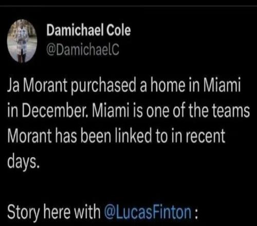 根據(jù)《孟菲斯商業(yè)呼聲報》披露,在灰熊考慮交易莫蘭特的消息被確認(rèn)前兩個多星期,莫蘭特已經(jīng)在邁阿密戴德縣購置了一套房產(chǎn),價值320萬美元。