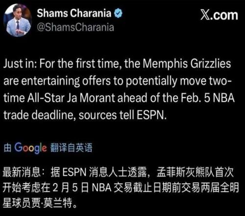 面對這一連串的風(fēng)波,灰熊也終于不忍了。近期報道,莫蘭特已經(jīng)正式被灰熊放入交易討論之中。而相比于此前的流言消息,業(yè)內(nèi)人士爆料,莫蘭特在今年交易截止日(2月6日)之前,基本已經(jīng)大概率離隊了。