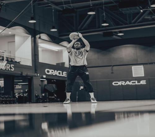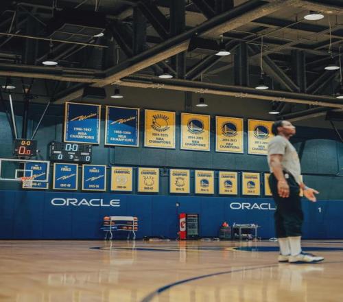 坐落在舊金山灣區(qū)特里-弗朗索瓦大道的勇士隊的訓(xùn)練館內(nèi),喬納森-庫明加剛剛結(jié)束了一組個人訓(xùn)練。