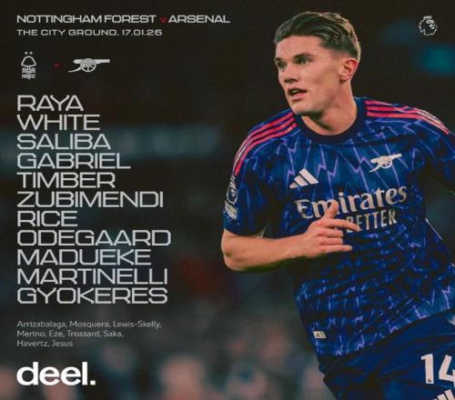 阿森納客戰(zhàn)諾丁漢森林:哲凱賴什、馬丁內(nèi)利、馬杜埃凱首發(fā)