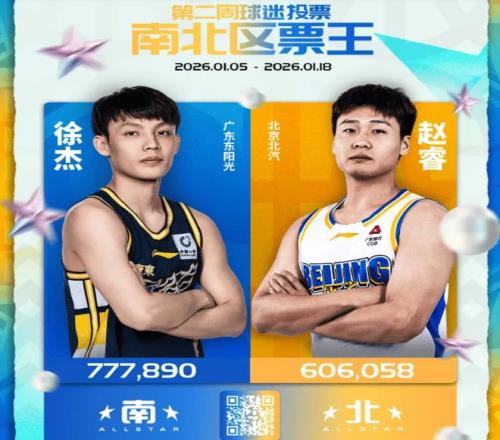 剛剛,CBA正式公布2026全明星投票第二周結(jié)果,從票數(shù)來看,廣東隊(duì)后場悍將徐杰,繼續(xù)成為了南區(qū)的票王,同時(shí),他依然是CBA全明星賽的總票王。北京隊(duì)的后場悍將趙睿,則成為北區(qū)的票王。