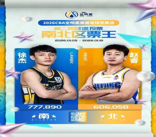 1月19日,CBA聯(lián)賽公司對外公布了2026年全明星第二次票選的結(jié)果。雖然仍然處于傷病恢復(fù)階段,但北汽男籃后衛(wèi)趙睿仍然贏得了球迷們的認(rèn)可與支持,他在這次投票中繼續(xù)獲得北區(qū)票王,他目前票數(shù)是606058。南區(qū)票王,也是全明星票王是廣東男籃后衛(wèi)徐杰,他目前票數(shù)是777890。