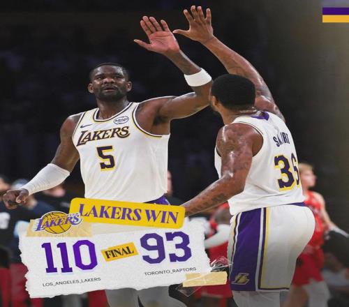 全場結(jié)束,湖人110-93大勝猛龍,下一場后天打掘金。東契奇25分2板7助、詹姆斯24分4板7助2帽。艾頓10投10中,怒砍25分13板,正負(fù)值+20僅次于范德彪(+25)。巴恩斯22分9板、馬穆20分6板、英格拉姆19分6板7助3斷。