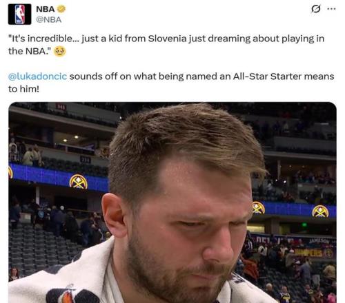 賽后談及自己當(dāng)選票王,東契奇說(shuō)道:“這簡(jiǎn)直讓人難以置信,我感謝每一位為我投票的球迷,作為一名來(lái)自斯洛文尼亞的孩子,我為夢(mèng)想而前往NBA打球,這對(duì)于我來(lái)說(shuō)是一種榮耀?!?/p>