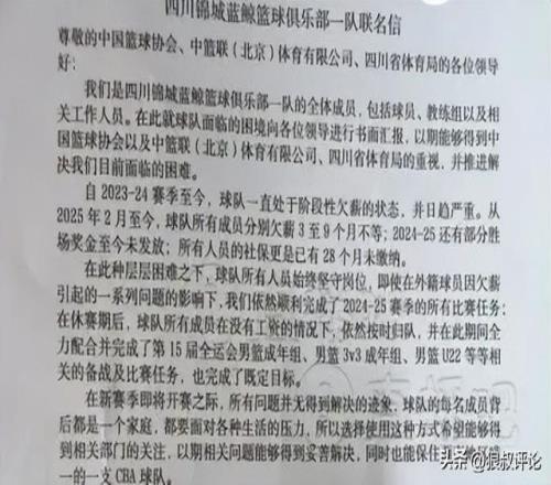 四川男籃球員聯(lián)名上書(shū)中國(guó)籃協(xié),希望能得到解決欠薪的問(wèn)題。截止到如今,四川男籃新賽季的戰(zhàn)績(jī)?yōu)?勝17負(fù),全聯(lián)盟唯一0勝的球隊(duì)。