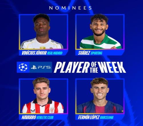 北京時(shí)間1月22日,在歐冠聯(lián)賽階段第7輪的比賽全部結(jié)束后,歐冠官方選出了本輪最佳球員的四位候選者,他們分別是皇家馬德里的維尼修斯、葡萄牙體育的路易斯-蘇亞雷斯、畢爾巴鄂競技的羅伯特-納瓦羅以及巴塞羅那的費(fèi)爾明-洛佩斯。